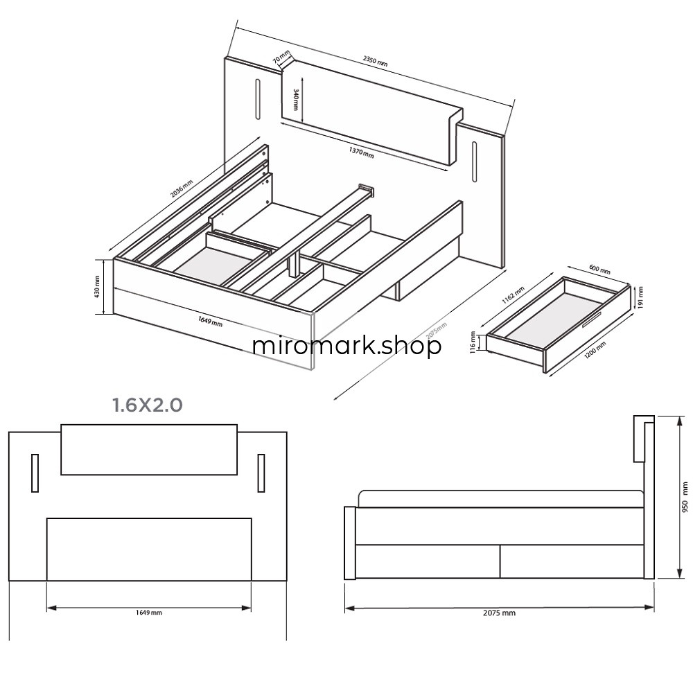 Высота кровати с учетом изголовья: